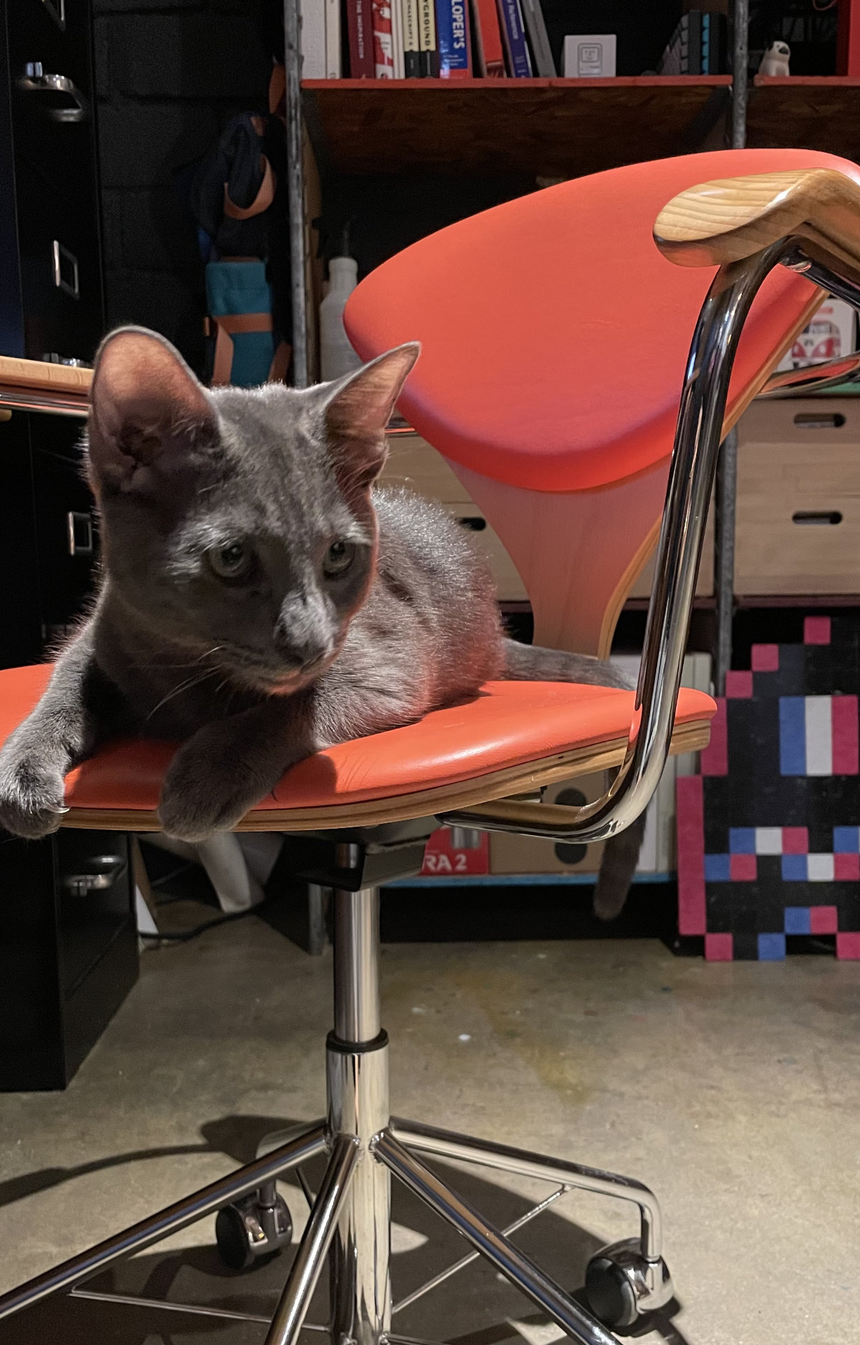 My studio has been taken over by (formerly) feral cats (say hello to Ashtray), so these paintings will be displayed at The Movement Gallery, Tadd’s fitness studio in the iconic Blue House at 1419 Beaumont Street.